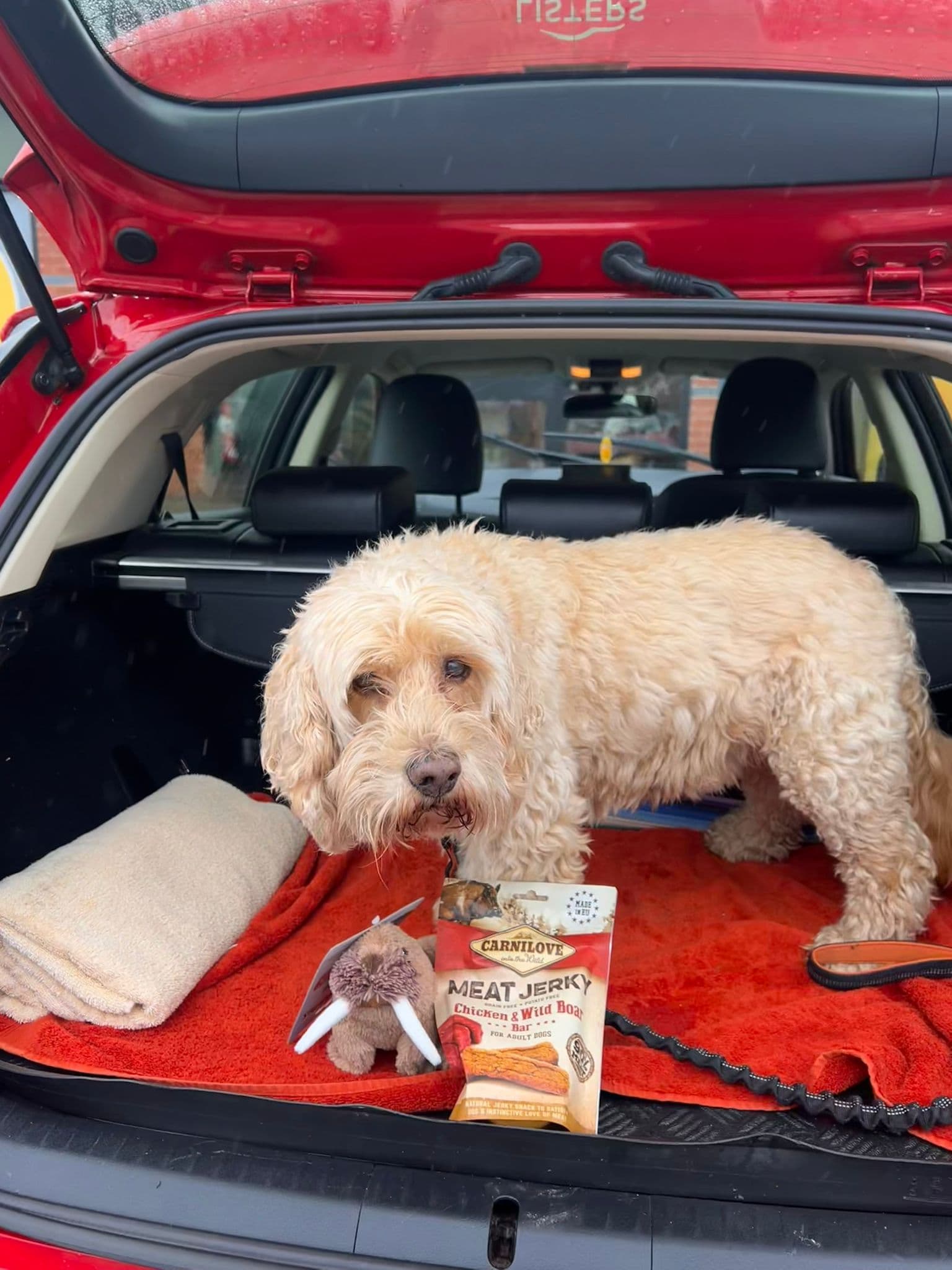 Ive a cockapoo & a cavapoo that get dead excited when lead comes out but hide when they see you with the equafleece realising its going to be put on