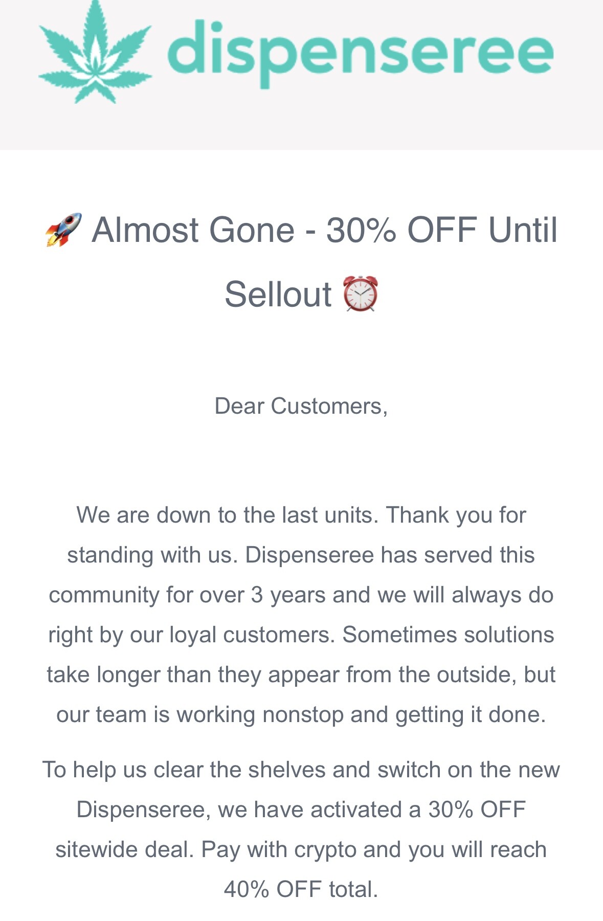 Dispenseree still sending out the emails tonight. Are they just rattling the tin for one last hustle? I’ll be amazed if my order ever turns up.