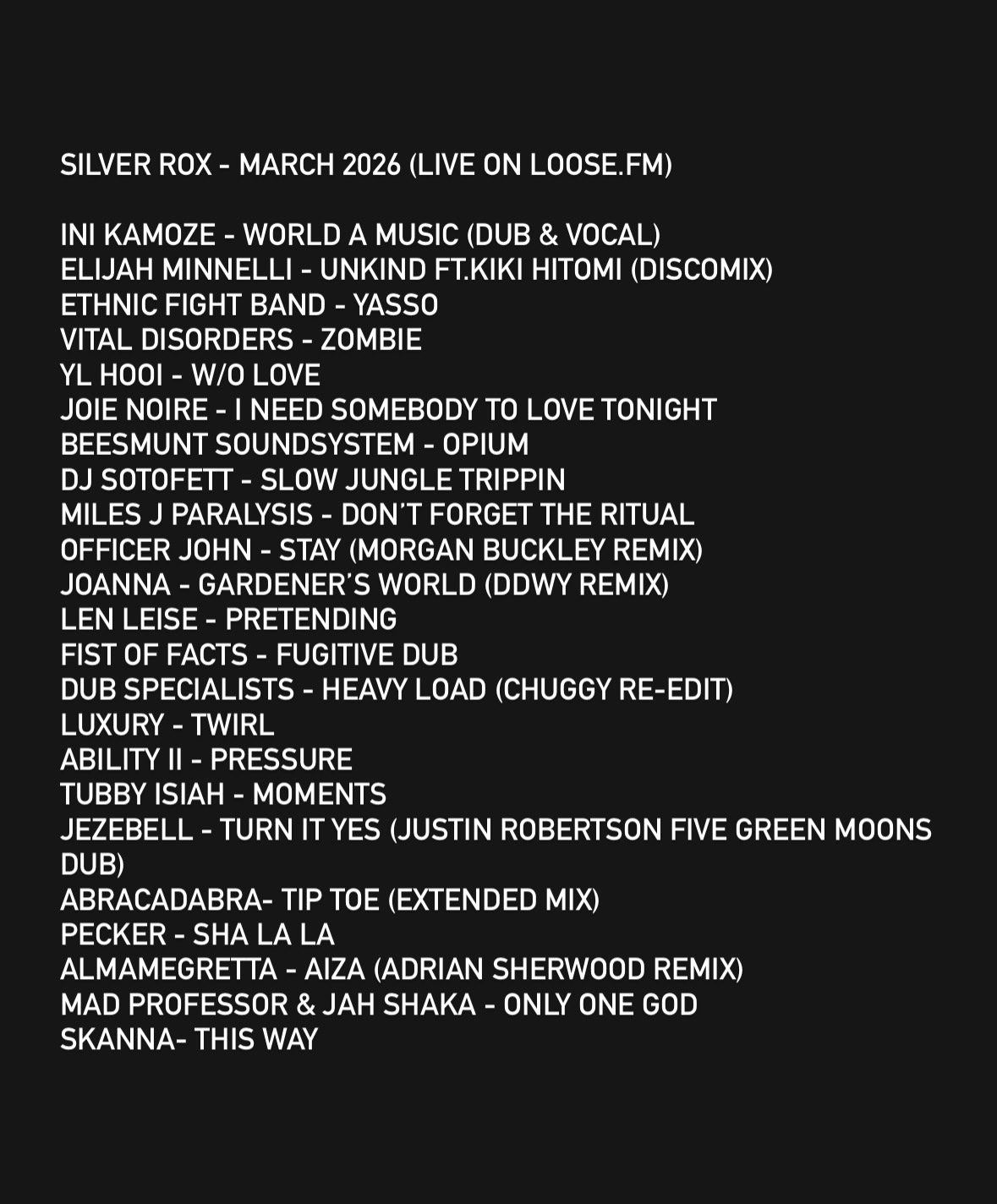 Usual mix of old and new although the new bits are edits and re-issues…didn’t have too much time to think about this one so just pulled a few tracks out and pressed play! Quite happy with it overall!