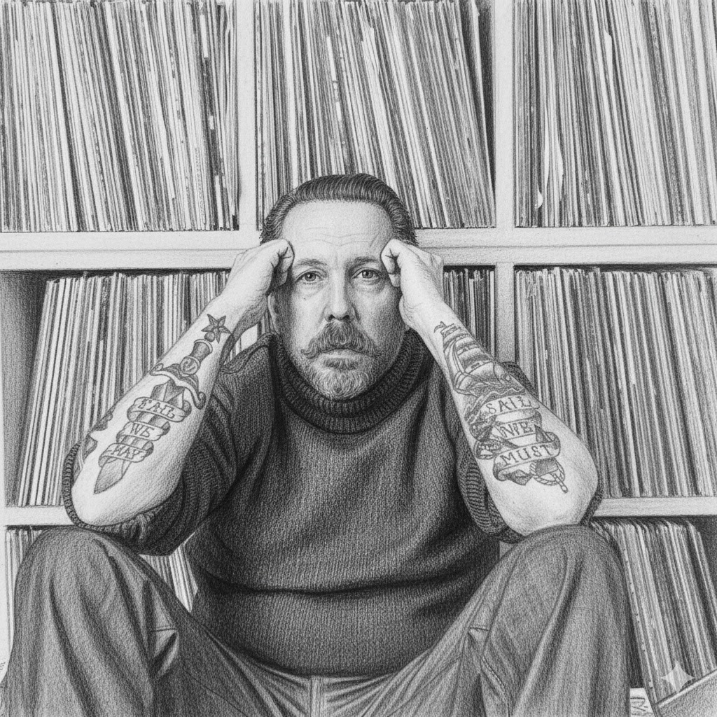 “A hyper-detailed black and white pencil sketch of a portrait based on the
