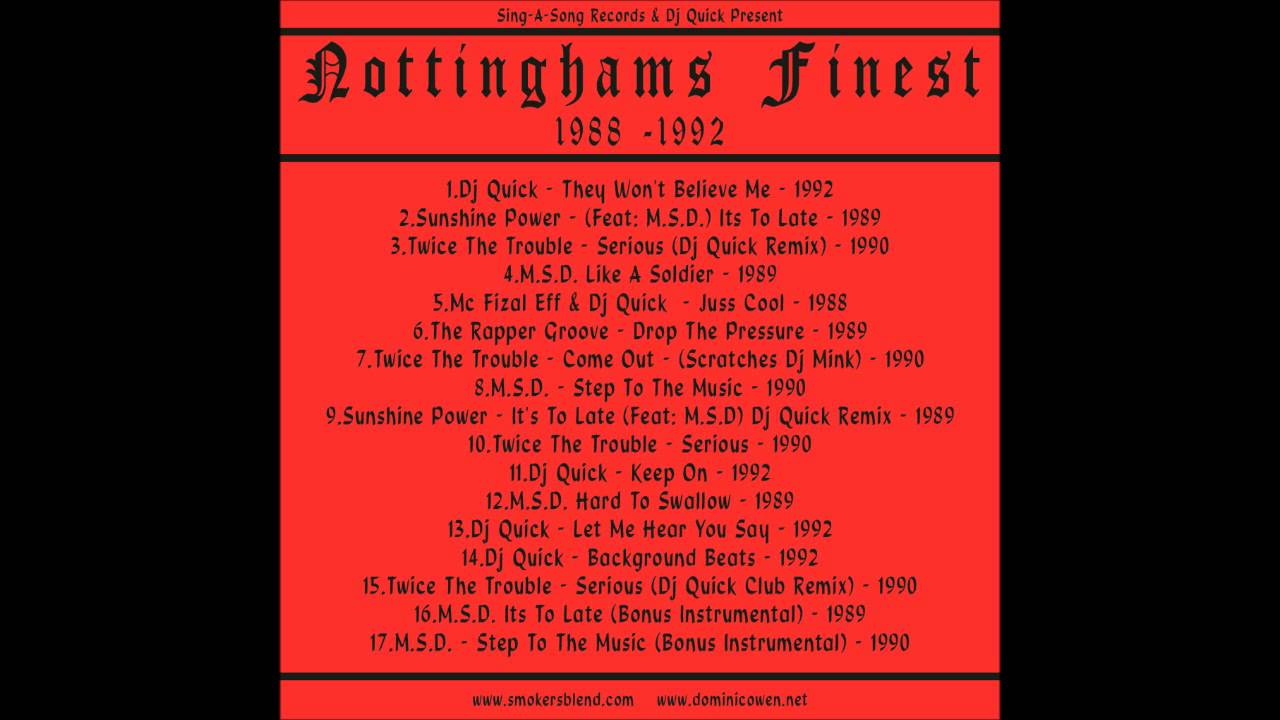 I found a tracklist online, here, but the track referenced, DJ Quik, Too Late, can not be found anywhere, which is weird enough.