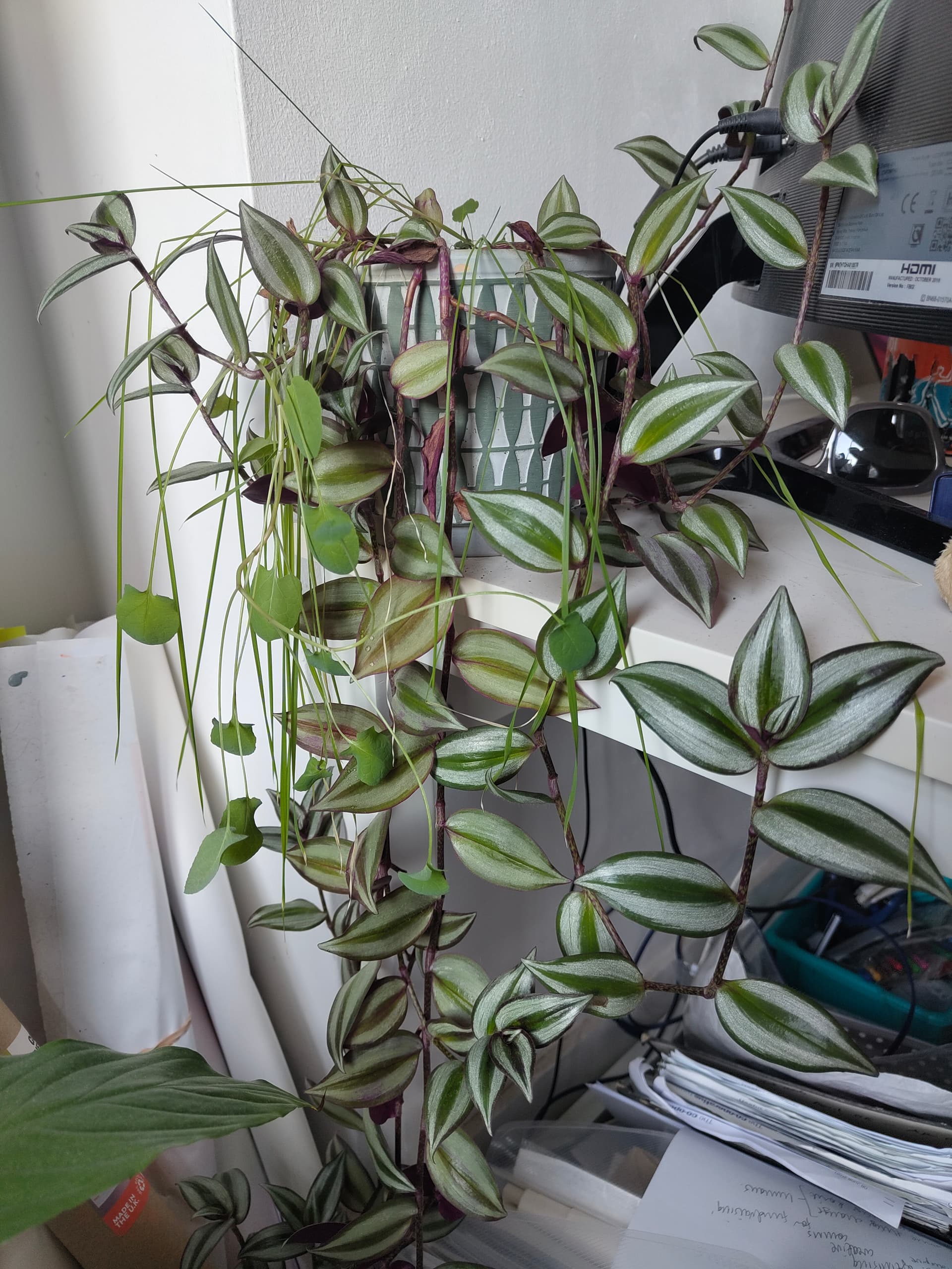 Couple of avocado plants struggling with this traumatic winter. Pruned them with optimism. Highly recommend the Wandering/Sailor/Jew as a plant - very hardy, beautiful and great as a hanger.