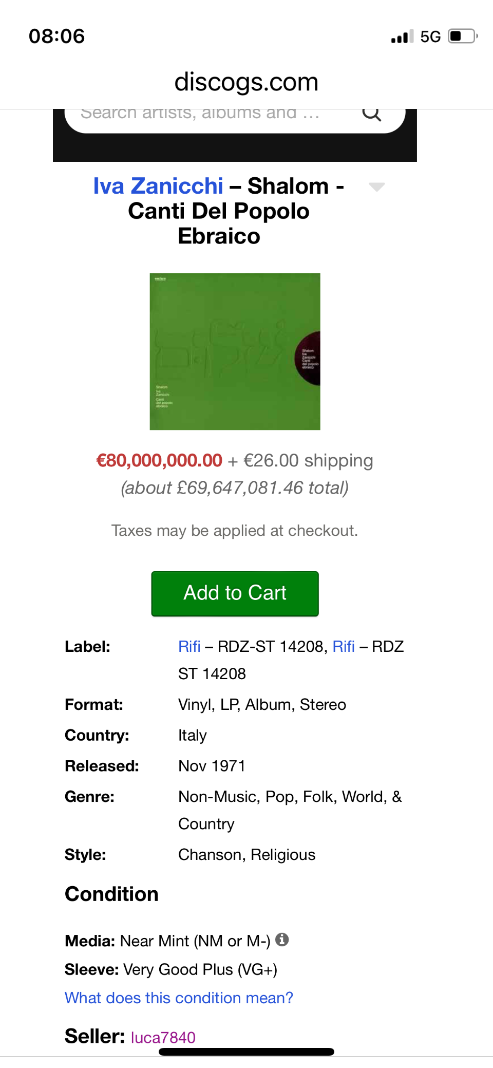 Saw a Discogs seller offering around 1,500 records all at the same price ($500 each), and all mostly in the same condition, Poor. Most of it total chud too. The fuck’s that about?