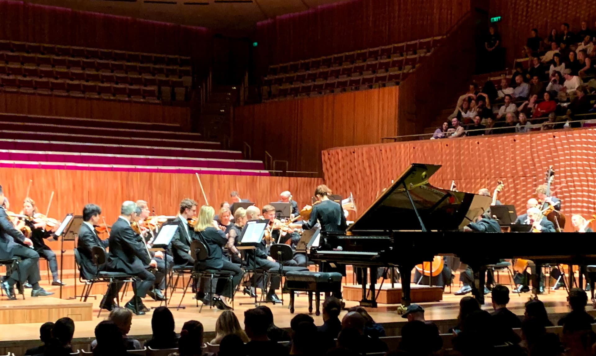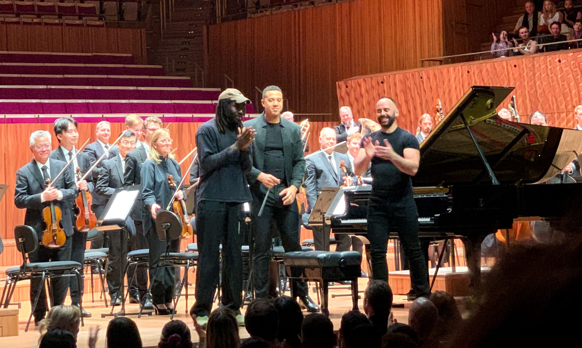 Hynes exited once again, allowing Adam Tendler to take center stage accompanied by the SSO for Happenings, another display of physicality by Adam with a section spent under the piano lid, strumming and striking strings, banging and knocking on wood panels, before he emerges triumphant at the finale to rapturous applause.