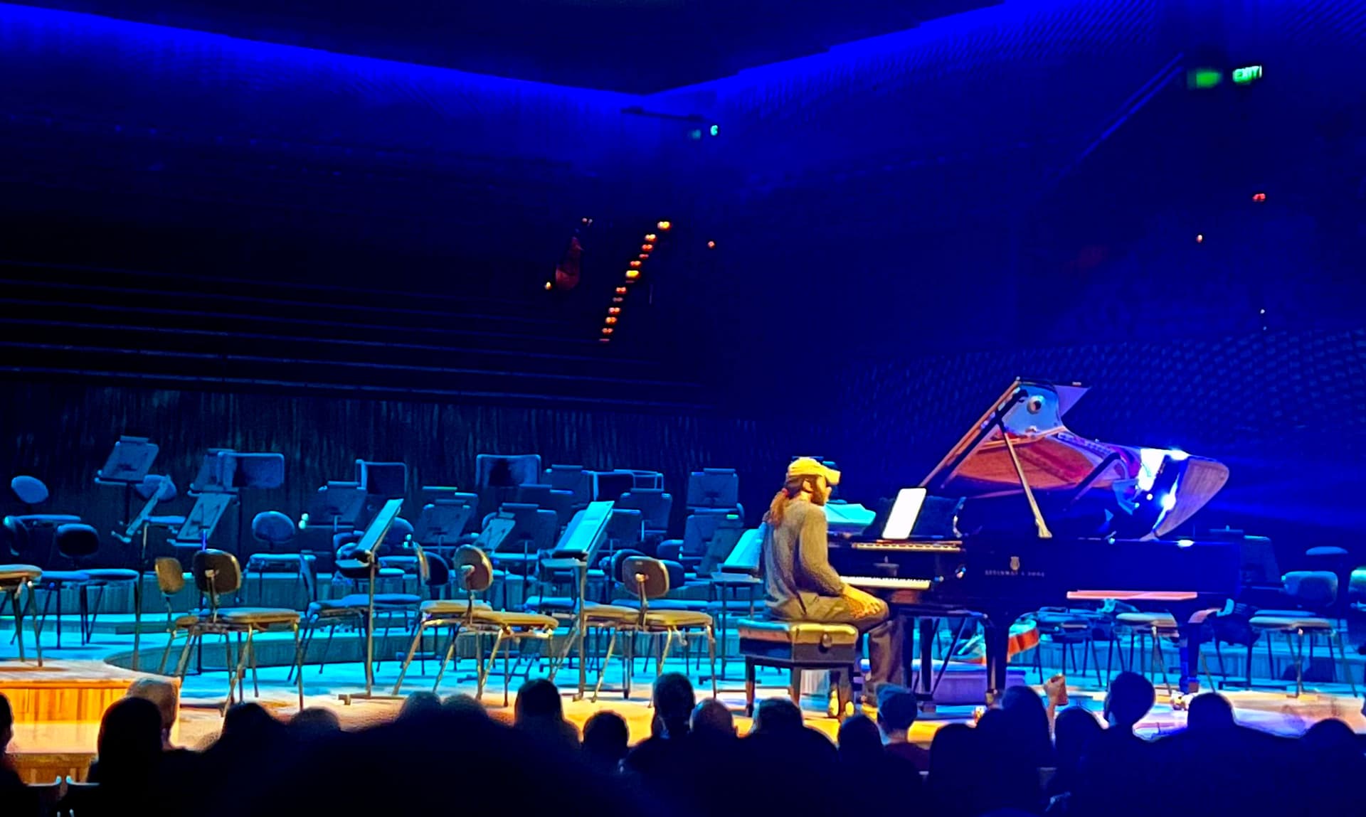 After an interval that was spent out on the Opera House courtyard, taking in the brilliant lights of Vivid, we took our seats for the first duet with Hynes’ friend and collaborator, Adam Tendler. Tendler bounded onto the stage with a huge smile and jubilant energy before taking his seat at a second piano that faced Hynes. As the two began performing The Longest Ride, a piece Hynes wrote for the 2020 coming-of-age drama television miniseries We Are Who We Are, I couldn’t take my eyes off Adam Tendler’s physicality while playing. His was the robust foil for Hynes’ hypnotic circular motifs, with Tendler rising from his seat at times to give extra emotional energy to his enthusiastic performance. Enveloped in the piece, switching from ecstatic joy to deep-seated reverence, Tendler and Hynes kept a telepathic communication open throughout via acknowledgement, encouragement, and respect. It was a joy to witness.